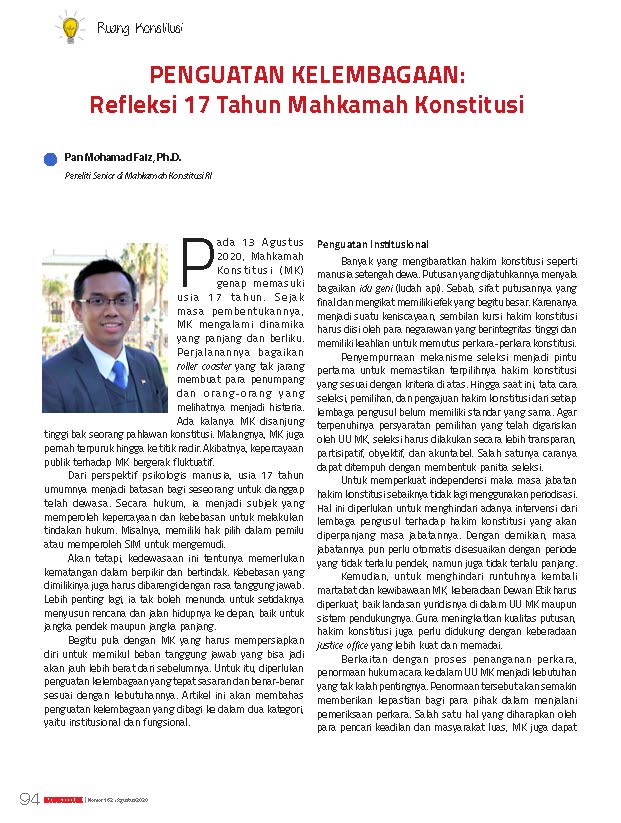 PENGUATAN KELEMBAGAAN: Refleksi 17 Tahun Mahkamah Konstitusi